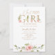Gold blush floral Sweet little girl baby shower Invitation. Floral gold letters baby shower invitation.