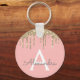 Gold Blush Pink Girly Sparkly Glitter Monogram Key Ring