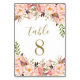 Gold Blush Pink Peony Wedding Table Number Cards - features a beautiful text layout of printed dark gold decorated with peonies, roses and greenery.