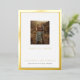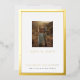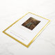 This minimal Save the Date invitation card is a beautifully simple option with a luxurious style. This customisable Save the Date card features a bold real foil gold border, reminiscent of the frame surrounding a painting. Framing elegant white space, this art gallery-inspired Save the Date invitation highlights a single photograph. The couple's names and wedding date compliment the modern layout. The back of the card features an additional photo with a bold frame, and a space to add details and a a wedding website.