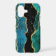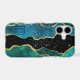 This pretty phone case features a dramatic abstract design in tones of blue, teal, gold and black. Tiny star confetti gives a sparkly effect, with your monogram in dark blue against lighter blue at the bottom left. Stunning!