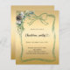 For a Christmas party with family and friends.. Decorated with a green simple hand-drawn bow, greenery and a pine cone. Personalise and add the details. Christmas party with a heart. Faux gold gradient background.
