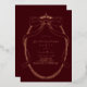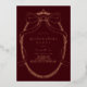 This coquette & vintage Quinceañera party invitation features a rose gold foil bow/ribbon frame with a tiara on a burgundy background. The reverse side features a burgundy background. Personalise it for your needs. You can find matching products at my store.