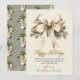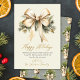 Gold Bow Watercolor Foliage Beige Christmas Holiday Card