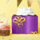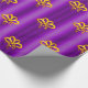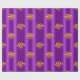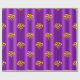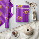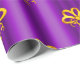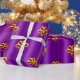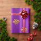 A colorful, festive pattern of gold bows scattered over a metallic purple to add a touch of elegance to your Christmas gifts this year.