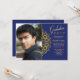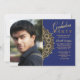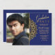 Feature your graduation photo next to this vintage, ornamental bracket with a deep blue background. <a href='http://www.freepik.com/free-vector/vintage-invitation-card_841974.htm'>Designed by Freepik</a>. <br/><br/>The card is easy to customise with your wording, font, font colour and choice of six paper types.<br/><br/>Not exactly what you're looking for? All our products can be custom designed to meet your needs at no extra charge.<br/><br/>Simply contact us at heartfelthelper@gmail.com.<br/><br/>Coordinating products available: Gold Bracket Graduation Invitation (no photo)
