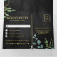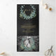 Gold Branch Eucalyptus Leaves Black Wedding Tri-Fold Invitation