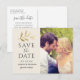 Gold Branch Wedding Photo Save the Date Cream Announcement Postcard
