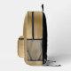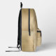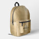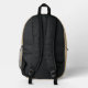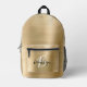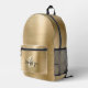 This personalised backpack features a monogram and first name in modern black and white script on an elegant gold faux brushed metal background.