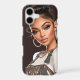 Step into luxury with this fashion-forward phone case featuring a couture portrait styled in gold hardware, layered jewelry, and glam textures. The rich chocolate backdrop enhances every detail — from the star-studded embellishments to the voluminous hair and glossy makeup. Perfect for editorial lovers, glam enthusiasts, and anyone who treats their phone like a fashion accessory.