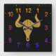 Gold bull with long horns rainbow colour numbers square wall clock