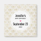 Save the date magnet with an elegant pattern with gold coloured bumble bees in a repeating pattern on a cream coloured background.