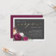 Elegant, floral surprise birthday party invitation featuring chic gold script calligraphy against a dark grey overlay with an arrangement of beautiful burgundy and cream peonies in one corner. Your details appear in simple, stylish typography. Click on "Personalise this template" to change the wording. Scroll down to "Customise further" to format the style or placement of the text. View the collection link on this page for matching products. Visit our store for more designs!