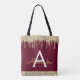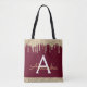 Gold Burgundy Glitter Sparkle Elegant Monogram Tote Bag