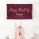 This stylish birthday banner design features gold "Happy Birthday" typography on a burgundy red background. You can personalise name & year text and the background colour. Perfect decoration to your modern chic adult birthday party.