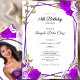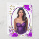 This elegant purple and gold 18th birthday debut invitation has purple roses and gold butterflies with a personalizable template to create your own message. Add your photo on the back to personalize the image. The invitation template is customizable in the listing editor and is also available as a digital download that's printable after you personalize it. This is a modern, blingy design that's still traditional enough for an elegant milestone birthday.