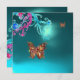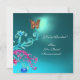 GOLD BUTTERFLY TEAL AQUA BLUE GEMSTONE INVITATION