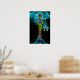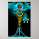 GOLD CADUCEUS AND 7 CHAKRAS IN BLUE FRACTAL ROSE POSTER