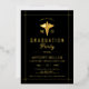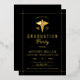 Gold caduceus Class Of 2025 black formal graduation gold foil invitation. Honour the achievements of the Class of 2025 medical school graduate with these elegantly crafted real gold foil on black invitations. Adorned with a gold caduceus, a well-known emblem of the medical profession, these invitations clearly represent the graduate's area of expertise. The design is enhanced by delicate gold borders that meet at the corners, adding a refined touch. Utilise this invitation to formally gather family and friends to celebrate this important milestone, reflecting the graduate's dedication through this exquisite and fitting design.