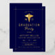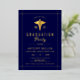 Gold caduceus Class Of 2025 navy blue formal graduation gold foil invitation. Honour the achievements of the Class of 2025 medical school graduate with these elegantly crafted real gold foil navy blue invitations. Adorned with a gold caduceus, a well-known emblem of the medical profession, these invitations clearly represent the graduate's area of expertise. The design is enhanced by delicate gold borders that meet at the corners, adding a refined touch. Utilise this invitation to formally gather family and friends to celebrate this important milestone, reflecting the graduate's dedication through this exquisite and fitting design.