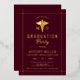 Gold caduceus Class Of 2026 burgundy formal graduation gold foil invitation. Celebrate the accomplishments of the Class of 2026 with these sophisticated burgundy graduation invitations with real gold foil. Each invitation showcases a gold caduceus, a prominent symbol of the medical field, effectively highlighting the graduate's specialization. The elegant design is complemented by subtle gold borders that converge at the corners, providing an air of sophistication. Use this invitation to formally invite family and friends to honor this significant achievement, embodying the graduate's commitment through its exquisite and appropriate design.