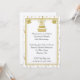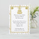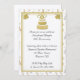 Elegant 50th anniversary party invitation with gold cake and confetti and streamer border. Invitations come complete with envelopes and choice of paper. Sample shown in "speckled" paper.