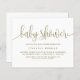 Invite family and friends with this customisable baby shower invitation. It features whimsical calligraphy and classic typography. Personalise by adding names, date, address and other details. This gold and white baby shower invitation is perfect for any baby shower season and theme. Other colours are available.