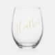 Gold calligraphy name custom bridesmaid gift stemless wine glass