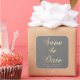 Grey background with gold calligraphy custom script "save the date" and your own monograms in elegant font. This sticker pairs beautifully with our cards and envelopes.