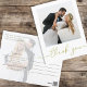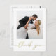 This design features a modern simple gold calligraphy script, a minimalist minimal two 2 photo, a wedding photo photography couple, a basic clean contemporary template, an elegant typography script text font, a photo wedding thank you cards, a custom customised personalised design, a golden handwritten lettering font, a creative simplistic elegant script, a calligraphy wedding budget friendly thank you cards