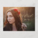 This pretty graduation thank you postcard features a full photo and modern calligraphy. The gold and white text overlay includes the phrase "thank you" written in elegant gold script, with the graduate's name and graduation year below in white. The gold and white typography design overlays a full horizontal photo of the new grad. On the back, you can write a custom message to recipients, or delete the template text to create a blank area for a handwritten note.