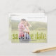 this design features a gold calligraphy script multi photo, with a QR code website online URL, with a scan for more information info, a postcard save the date, a simple minimalist 2 two picture, with a vellum clear photo overlay on the back side, a modern classic save the date, for wedding engagement engaged couple, a trendy stylish calligraphy script, a creative simple typography style, a budget friendly wedding postcard
