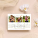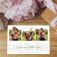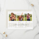 this design features gold calligraphy script multi photo save the date cards, with a QR code website online URL, for guests to scan for more information info, a simple minimalist 3 three picture layout, with modern classic save the date, a wedding engagement engaged couple style, trendy stylish calligraphy script, with creative simple typography style, an editable simplistic contemporary design,