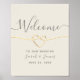 Elegant, modern, minimalist neutral champagne gold wedding welcome poster with faux rope heart and simple handwritten calligraphy script.