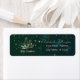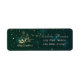 Gold pine tree branches, Christmas ball, candle, and snowflakes on a green background.