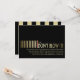 Modern, stylish invitation template with birthday candles in digital faux gold foil on an elegant jet black background. A single red and white lit candle appears just before the words "shhh... Don't blow it!" Simple, minimalist text fields that are easy to customise. On the reverse, the birthday candles are echoed with vertical digital faux gold foil stripes.
