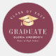 Simple text gold cap maroon graduation sticker. Personalise with your own details.