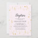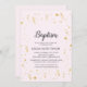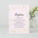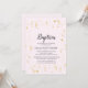 This Gold Celebration on Pink baptism invitation is perfect for an elegant baptism, christening, or baby dedication for a girl. The modern design features faux gold decorations on a plain pink background with simple dark grey calligraphy.