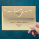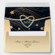 Mystical, elegant, modern, romantic, celestial boho gold foil and navy blue wedding 5x7 envelope with rope heart monogram - initials of bride and groom inside, starry night and return address.