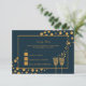 Gold Champagne Bubbles - Blue & Gold - Wedding RSVP Card