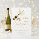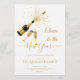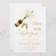 Celebrate the New Year in style with this elegant gold champagne party invitation. Featuring a popping champagne bottle, clinking glasses, sparkling bubbles, and metallic vector accents, this design is perfect for New Year’s Eve parties, festive gatherings, and modern celebrations. Customize the details for your event and share unforgettable holiday cheer.