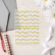 Enhance your wedding or party invitation with this translucent vellum paper overlay. The design includes a gold-coloured chevron stripe pattern with a rough, uneven, hand-drawn look. Overlay it with a printed photo or your text beneath on an invite.