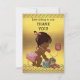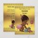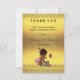 Elegant custom personalised vintage ethnic girl baby shower thank you card template for baby girls with a beautiful vintage illustration of a cute and adorable African American baby girl with stylish pink diaper and a pink bow in her hair with trailing ribbons. She is ringing you on an old red retro telephone to say thank you! She is holding a little suitcase and her quirky teddy bear is leaning against it - she's all packed up and ready for her arrival!! The background is a glamourous faux gold foil images with a classy gold chevrons border and dark brown text. Chic, trendy, glamourous, girly, fun, fashionable, whimsical, affordable personalised / personalised custom baby shower thank yous templates for baby girls. Decorated on both sides. The back / reverse side has the same design. Double sided printing / front and back. If you need any assistance customising your product please contact me through my store and I will be happy to help. PLEASE NOTE:- All invitations on Zazzle have flat printed images - not real gold foil.