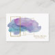 Feminine yet strong and captivating this beautiful unique artistic and abstract modern business card is for someone who is seeking an artsy beautiful chic design for their business branding. There are thin gold geometric shapes combined with a soft feminine abstract purple pink and blue watercolor shape. The font colour is gold and the font type is strong and will get noticed.