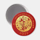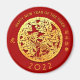 Golden Chinese paper-cut of a tiger (model n°8) into a circle + small Chinese Tiger ideogram + Happy New Year in Chinese and English and large 2022. Design on round magnet with red background. You can easily change background colour and year (font, colour, size and position) by clicking the customise button. Matching greeting card and postcard. Perfect for a modern and timeless Chinese New Year of the Tiger 2022.