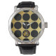 Customisable watch with golden traditional Chinese papercut of Dog and red symbol on black round shape forming dots pattern on golden texture image background. You can easily change size and positionof the design and background colour by clicking the customise button. Perfect for Chinese New Year of the Dog 2018 or birthday (people born in Dog Year). Available with white papercut and more. Matching Greeting card, postcard, sticker, ornament, paper napkin, paper cup and paper plate,. ----- "The Dog (狗) is one of the 12-year cycle of animals which appear in the Chinese zodiac related to the Chinese calendar. The Year of the Dog is associated with the Earthly Branch symbol 戌. The character 狗 refers to the actual animal while 戌 refers to the zodiac animal. (...) People born within these date ranges can be said to have been born in the "Year of the Dog", while also bearing the following elemental sign: