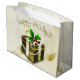 Bag your Christmas gifts with this whimsical and festive Gold Christmas Gift Box Gift Bag. Gift bag design features a vibrant gold Christmas gift adorned with falling snowflakes against an elegant scroll and leaves background. Additional gift and holiday items available with this design as well.