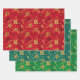 Gold Christmas Poinsettia Flowers Wrapping Paper Sheet