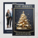 A beautiful and luxurious design featuring a single solid looking faux gold Christmas tree resting on a round base that appears to be 3 dimensional. The tree is surrounded by scattered stars that appear to sparkle and shine and all are set against a dark blue background that makes the tree pop. The design has an elegant golden border around it and templates for your business year end greeting to customers. This traditional, classic and timeless design is ideal for any professional, business or corporate looking for an upmarket and sophisticated design to send to customers, clients, friends and family to thank them for their support over the year. There are additional templates for your qr code (or replace it with your logo) and staff photo on the back. These are ideal for the festive holiday period and convey the spirit of the season. Happy holidays!