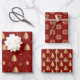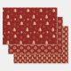 Gold Christmas Tree and Poinsettia Patterns on Red Wrapping Paper Sheet